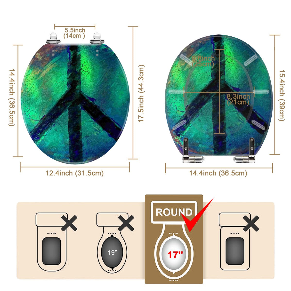 • 14.2"x17.4" *Please measure the size of the toilet before purchasing to ensure that it can match perfectly.