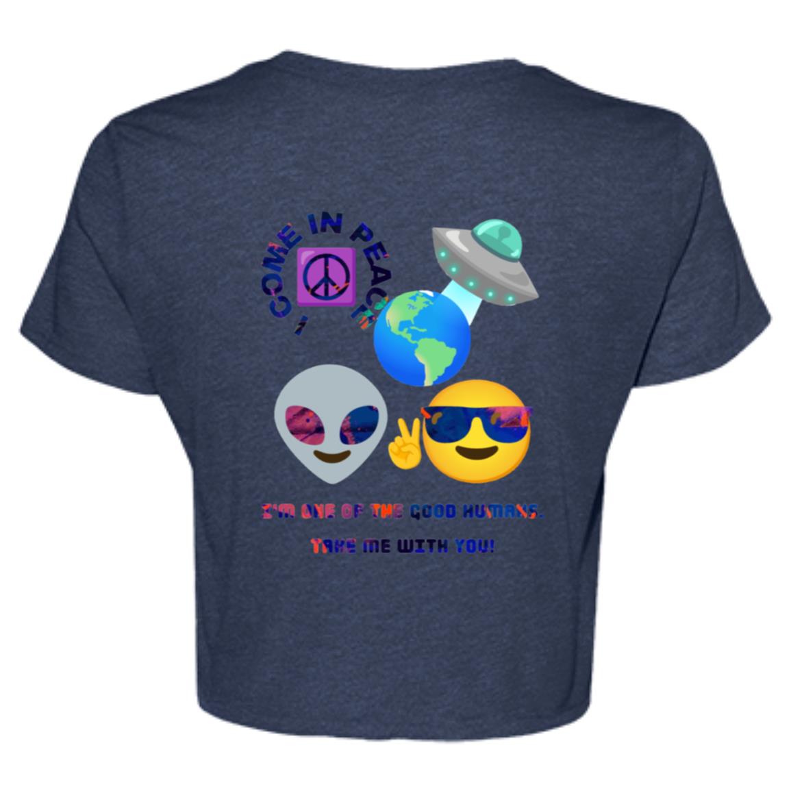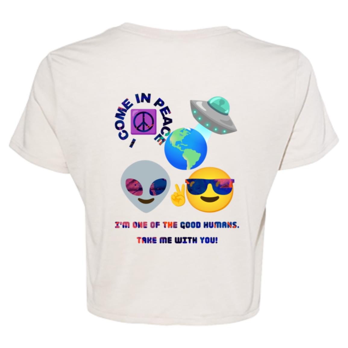Gavin Scott I COME IN PEACE Flowy Cropped Tee (Femme S-2XL)
