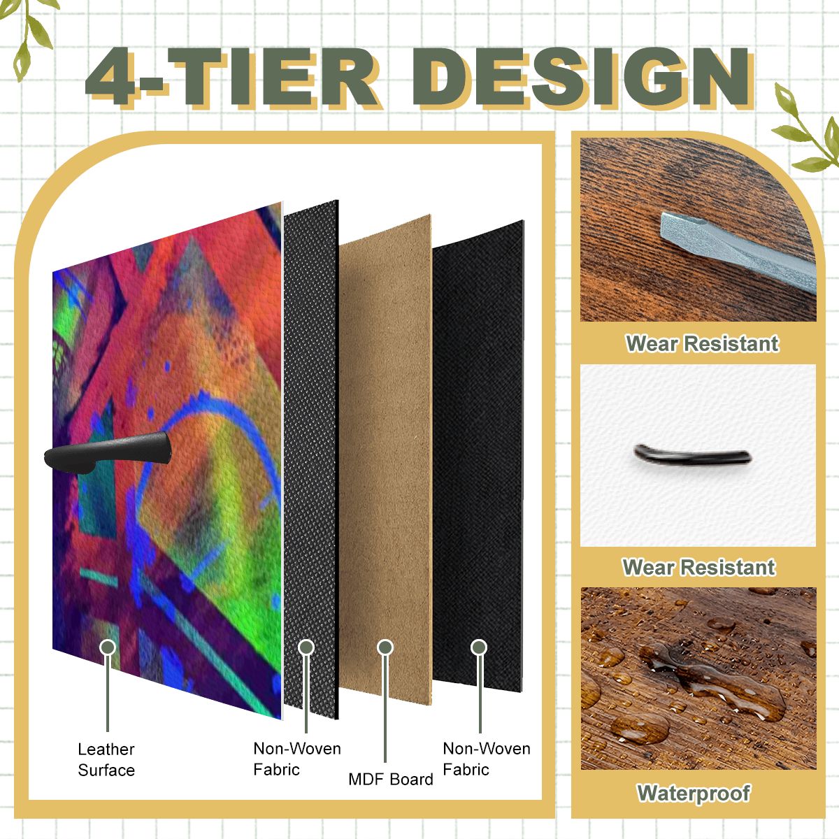 - Strong steel frame, durable wood board, and premium fabric drawers with premium leather front.