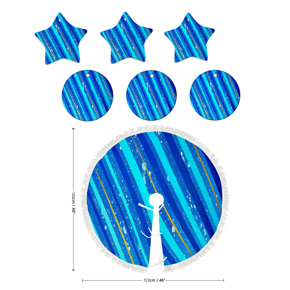 · Set Contains (1)Tree skirt with white fringes, (3) round and (3) star-shaped ceramic ornaments