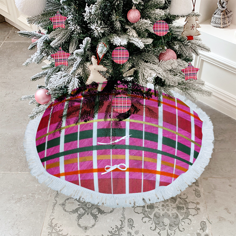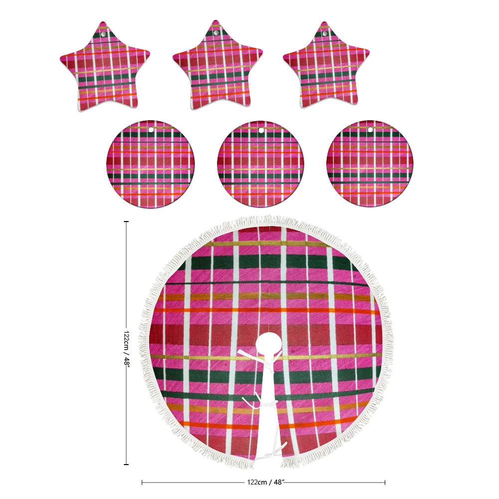 Deck the halls in true Gavin Scott fashion with this exclusively designed holiday tree set. Tie your whole scene together with six ceramic ornaments and matching tree skirt. Dazzle everyone this year with pieces that keep things merry and bright! The vibrant tree skirt has beautiful tassels on the edges and a velvet plush feel. The design of the bandage makes the skirt stay firm and easy to place. The Christmas tree skirt can set off your gift boxes, gift bags, dolls, etc., which enhance the spirit and cheer in holiday seasons.