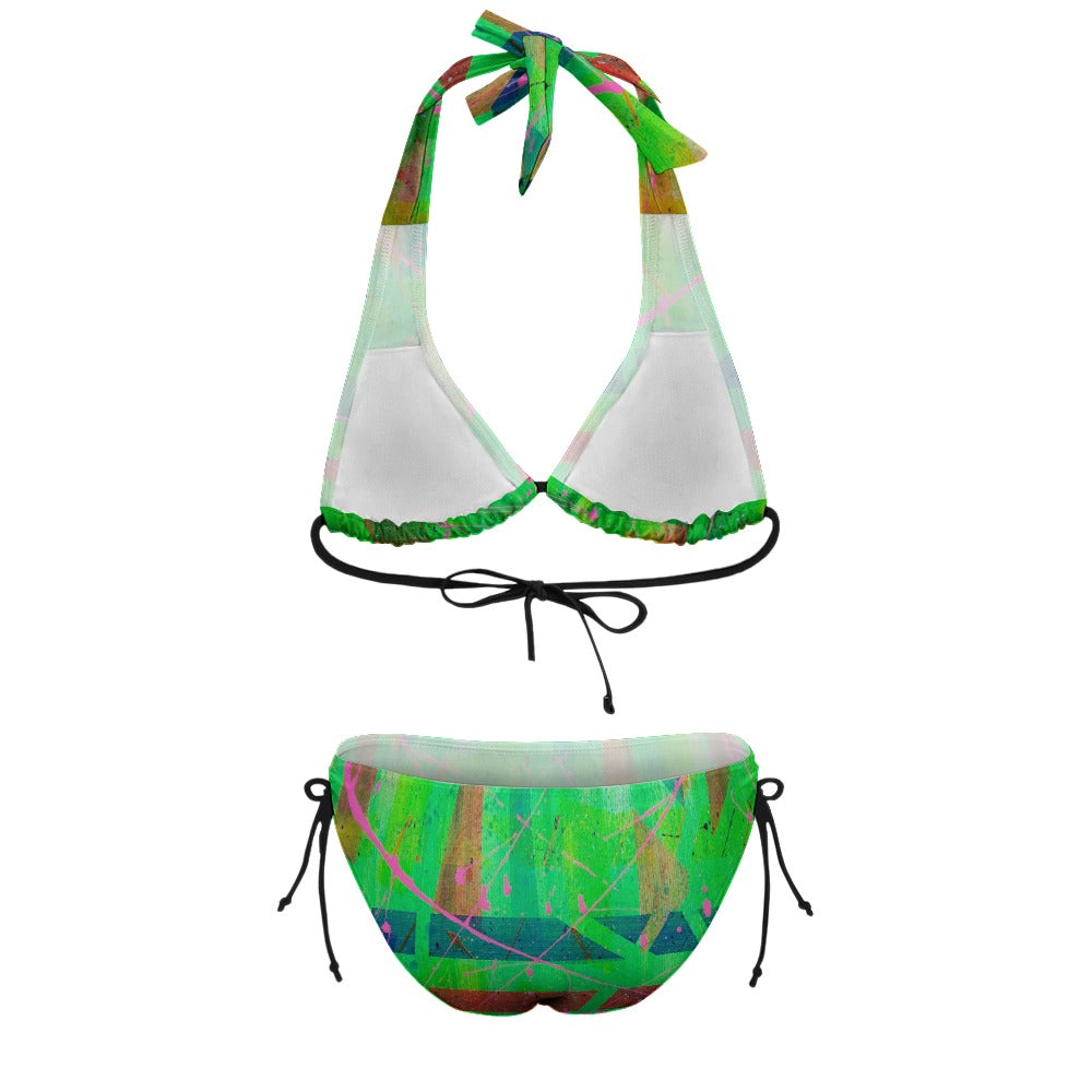 Designed with curvy women in mind, this swimsuit features a triangle bikini top with adjustable neck and middle back ties to ensure a perfect fit. The wide straps provide extra support and comfort, while the low waist pants are designed to flatter your figure. The adjustable side ties on the hips allow you to accentuate your curves and show off your best assets.