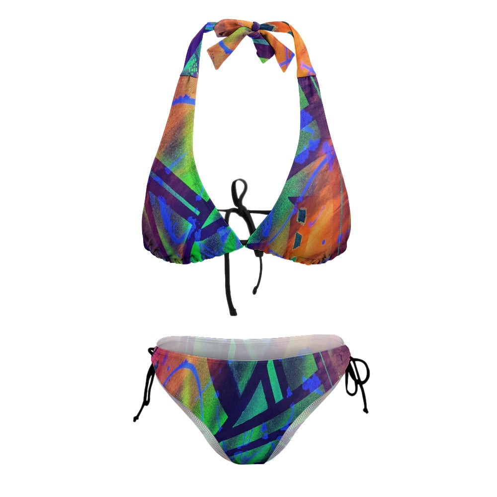 Designed with curvy women in mind, this swimsuit features a triangle bikini top with adjustable neck and middle back ties to ensure a perfect fit. The wide straps provide extra support and comfort, while the low waist pants are designed to flatter your figure. The adjustable side ties on the hips allow you to accentuate your curves and show off your best assets.