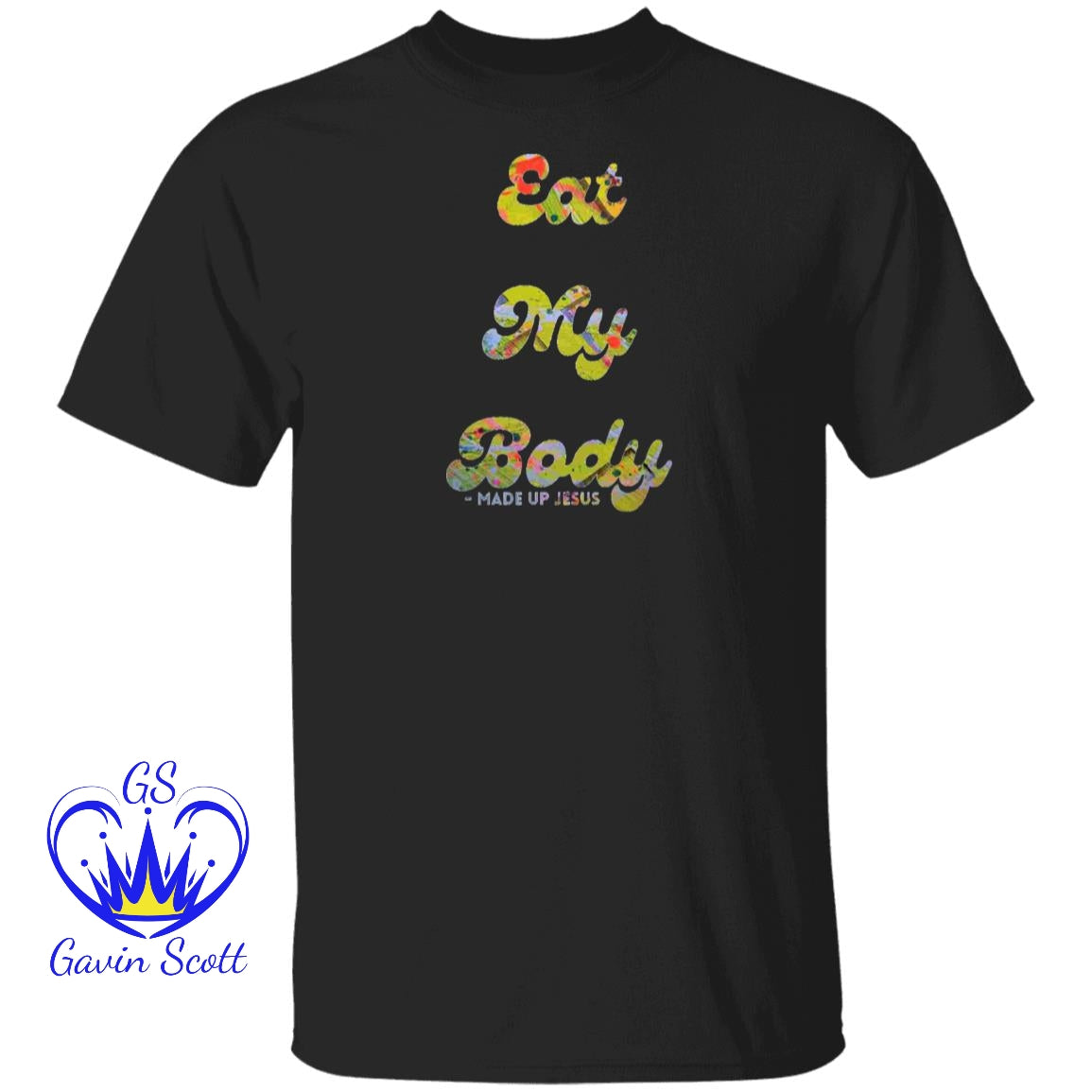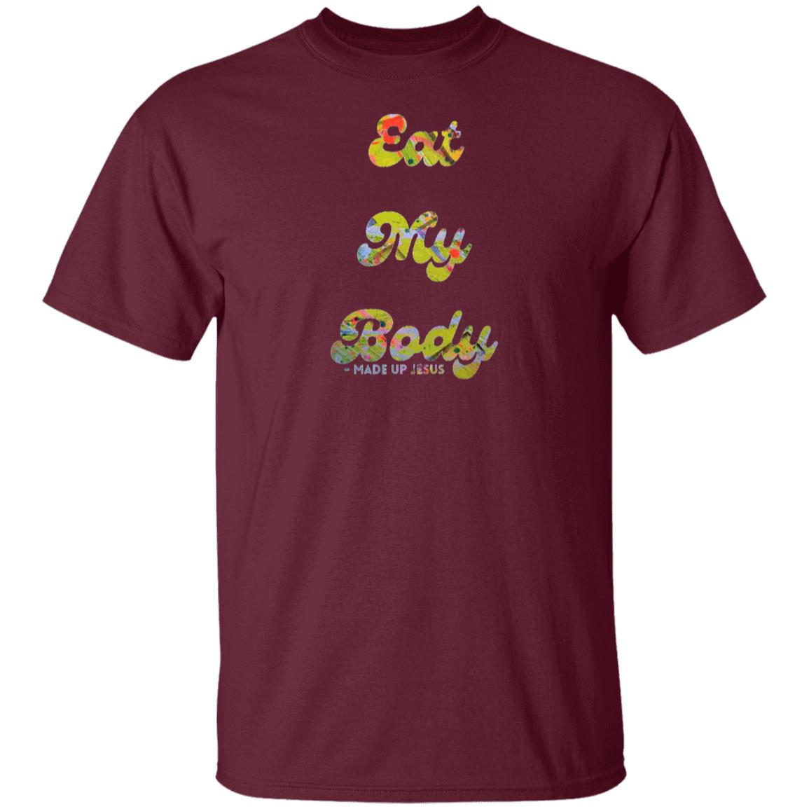 Show off with the Gavin Scott EAT MY BODY T-Shirt! Made with sustainably grown USA cotton, this heavyweight tee features a playful design that lets you express your disdain for religion (in a fun way). With a classic genderless fit and premium DIGISOFT® printing, this tee is perfect for those who don't take themselves too seriously