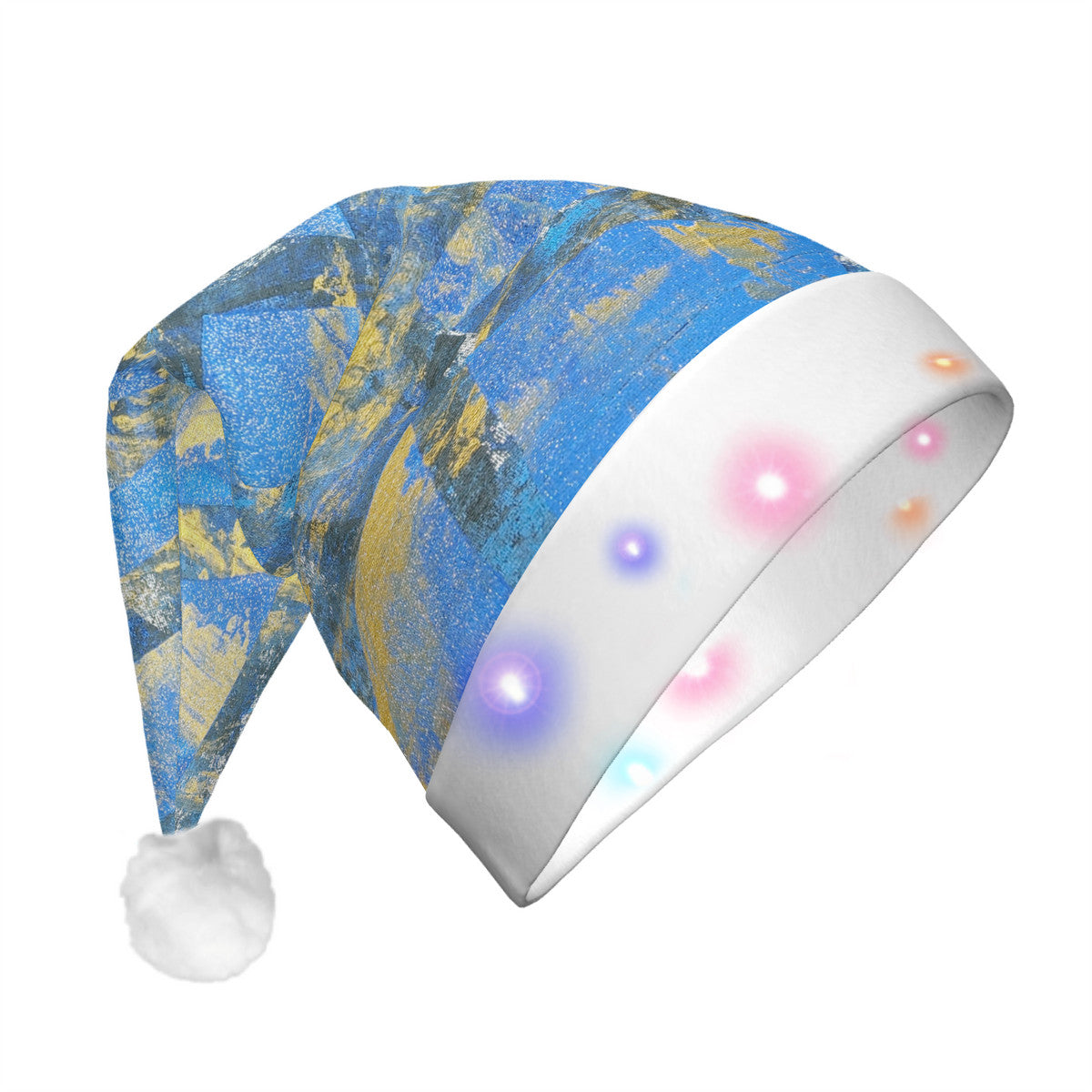 This accessory consists of one piece with white plush trim around the hat's edge and a white pompom on top. It includes a built-in, removable LED flashing light (simply remove the insulation sheet to activate it).