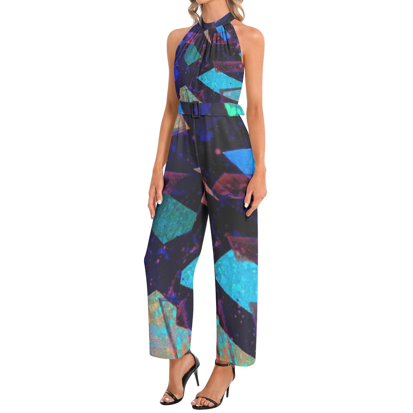 Gavin Scott Halter Neck Buckle Belted Jumpsuit (Femme XS-3XL)