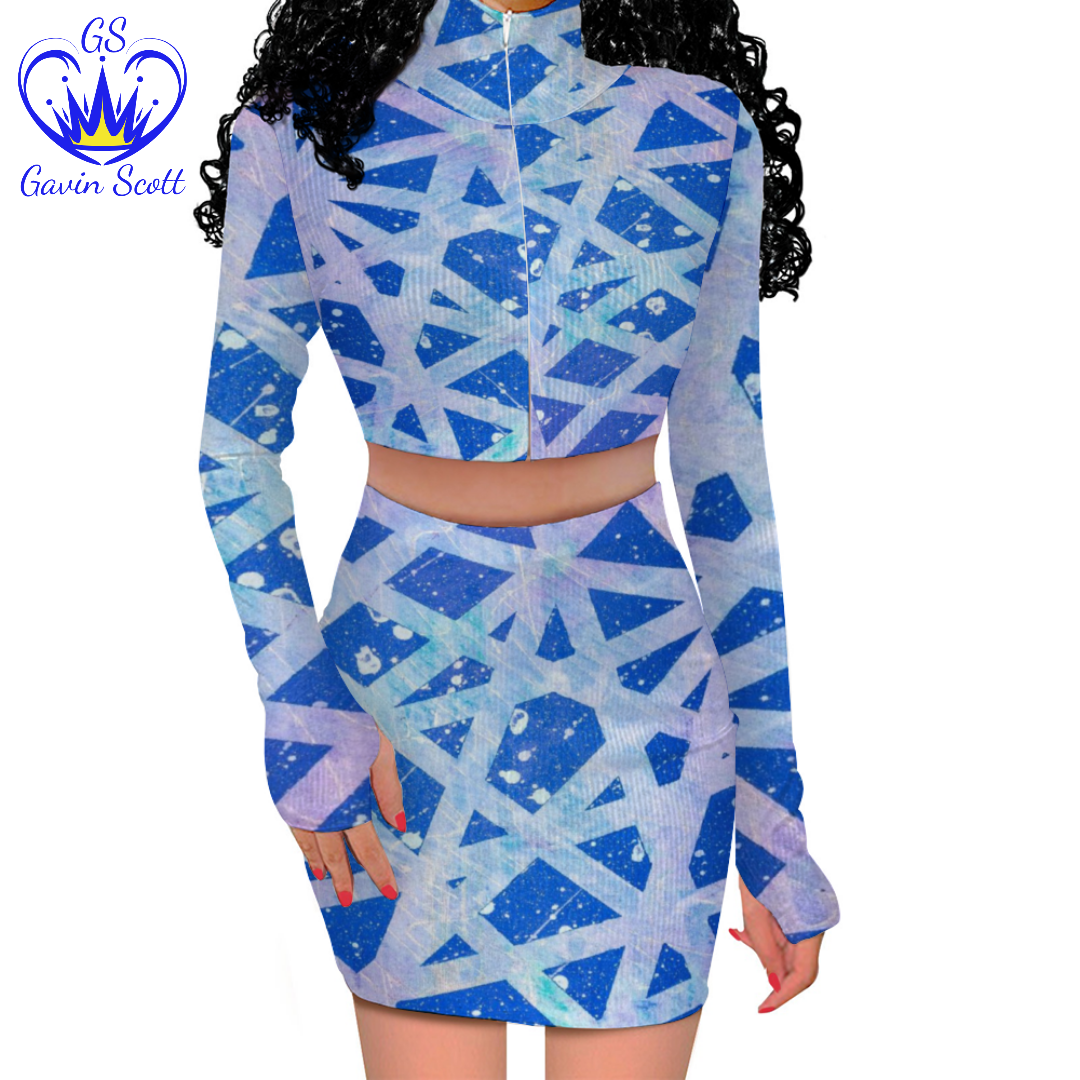 Gavin Scott Long Sleeve Zip Up Ribbed Top & Short Skirt Set (Femme S-4XL)