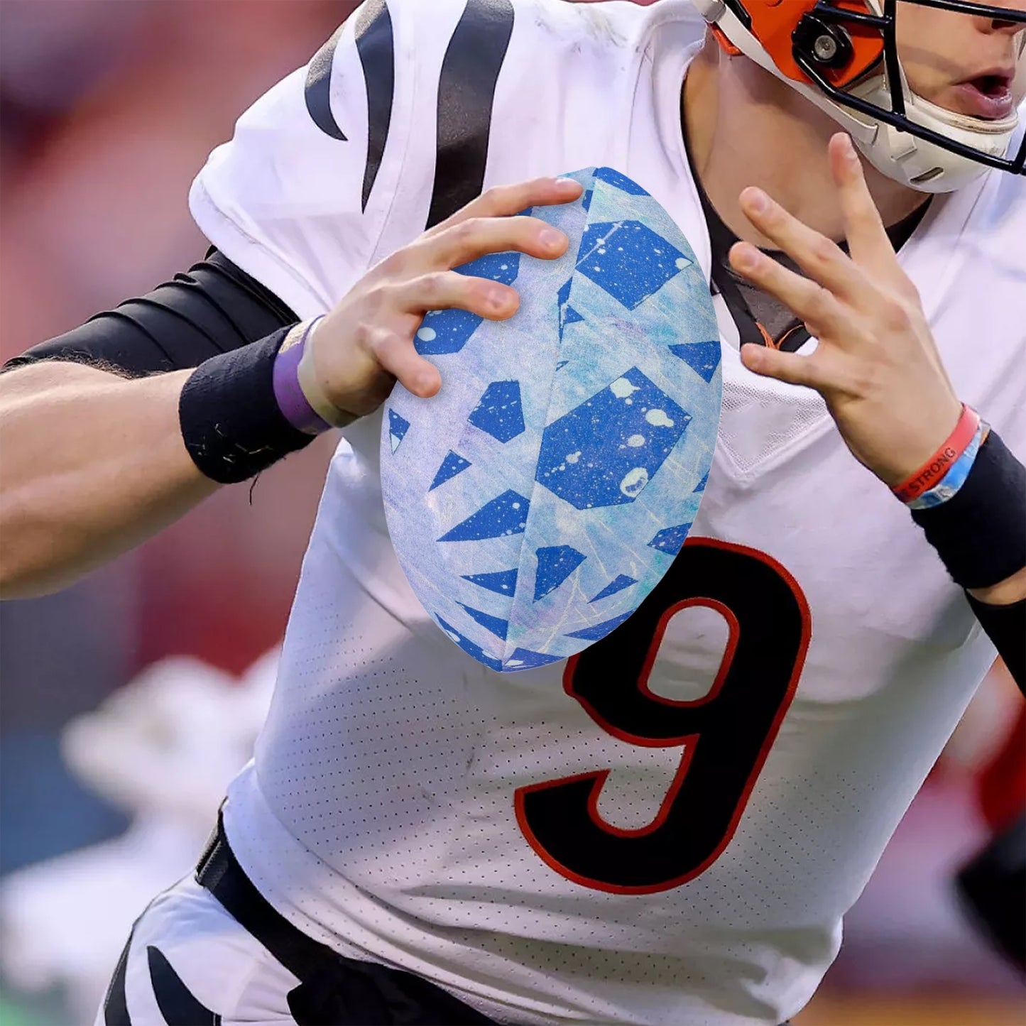 When you brush/wipe your football, it’s best to use a multi-directional pattern: clockwise, counter-clockwise, up, then down.