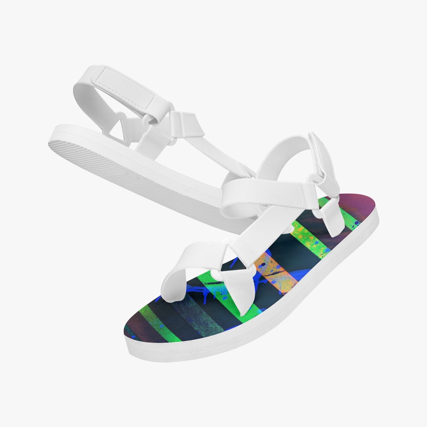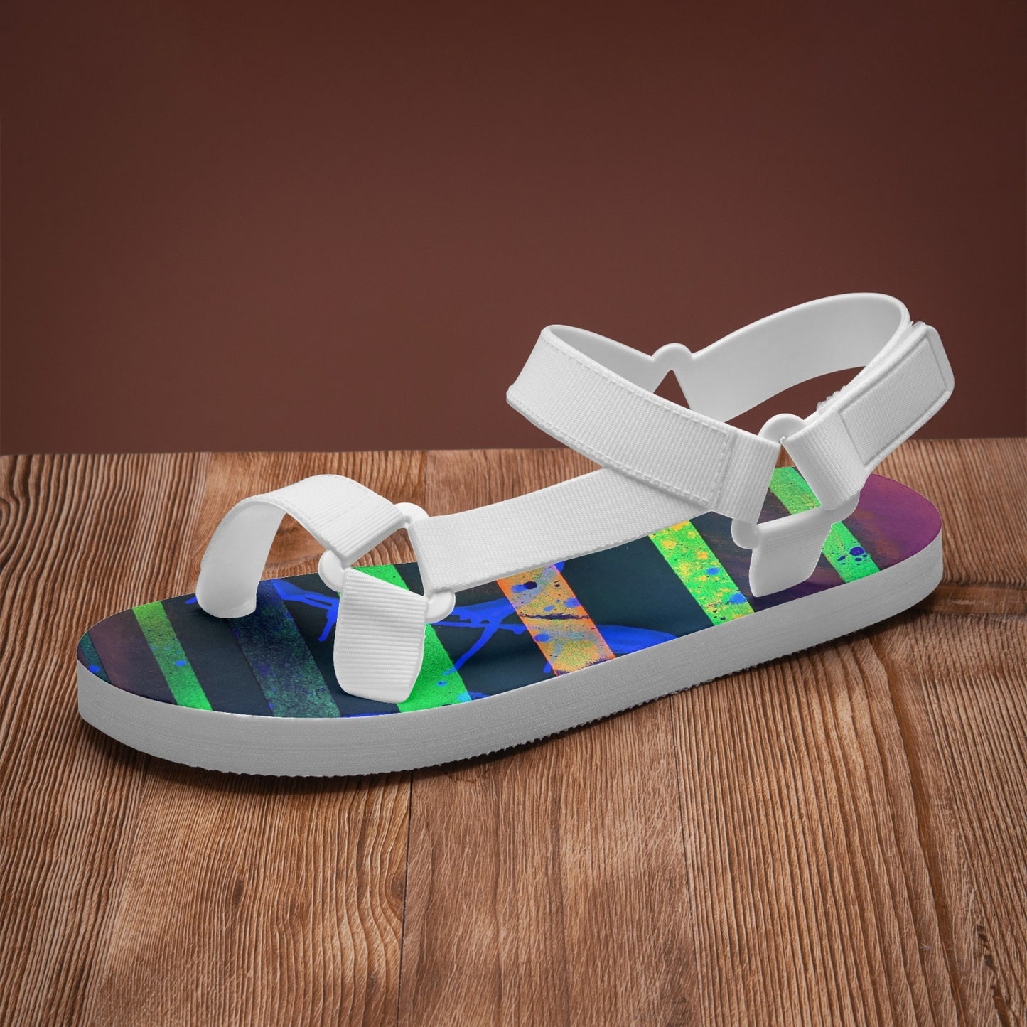What sets these sandals apart is their exclusive design by renowned artist Gavin Scott. Each pair is carefully crafted with attention to detail, showcasing Gavin Scott's unique artistic vision. With these sandals, you'll not only be stepping out in style but also wearing a piece of wearable art.