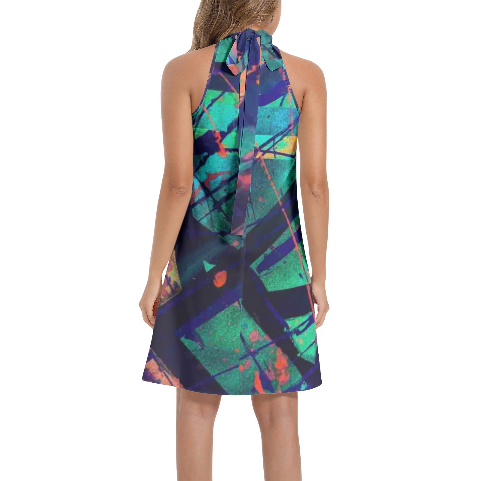 Sleeveless, Halter neck, Tie back closure, A-Line flared, Women's midi dress