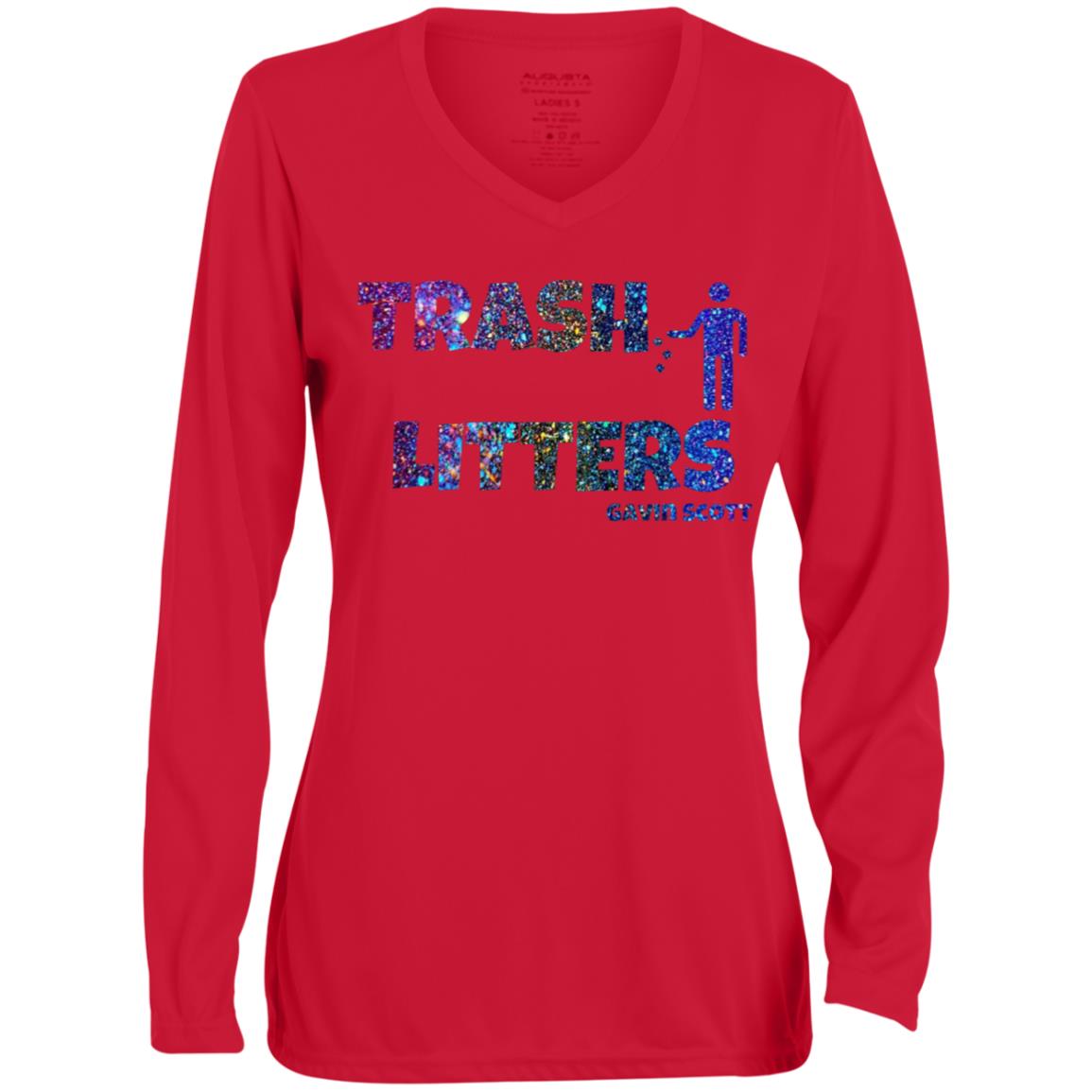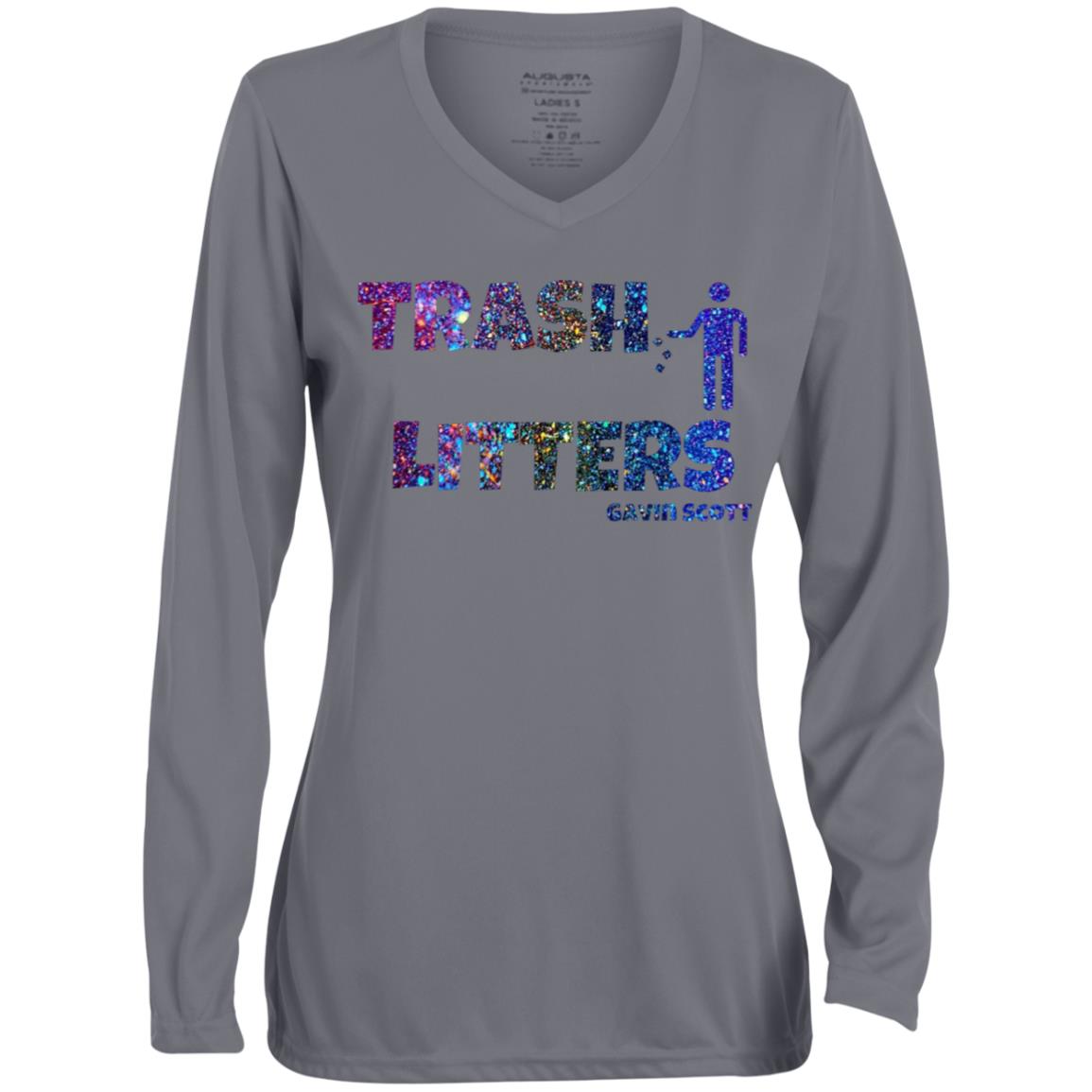 Gavin Scott TRASH LITTERS Moisture-Wicking Long Sleeve V-Neck Tee (Femme XS-3XL)