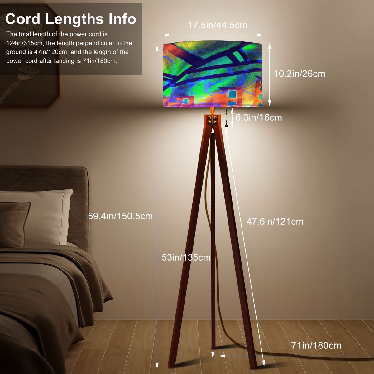 - Floor lamp total height: 59.4", Lampshade height: 10.2", Lampshade diameter: 17.5". The total cord length is 124.0", with the cord length from the base being 71.0". Please note that due to different production batches, the cord length may vary by 4in/10cm.