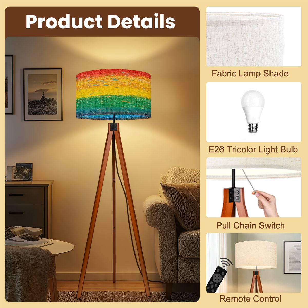 - This floor lamp features a linen textured fabric shade that diffuses light softly to protect your eyes. The wooden tripod structure is sturdy and durable to ensure stability. In addition to the pull-cord switch, it also comes with a remote control for convenient remote operation. You can switch between cool light, warm light and neutral light to create different atmospheres and meet diverse needs.