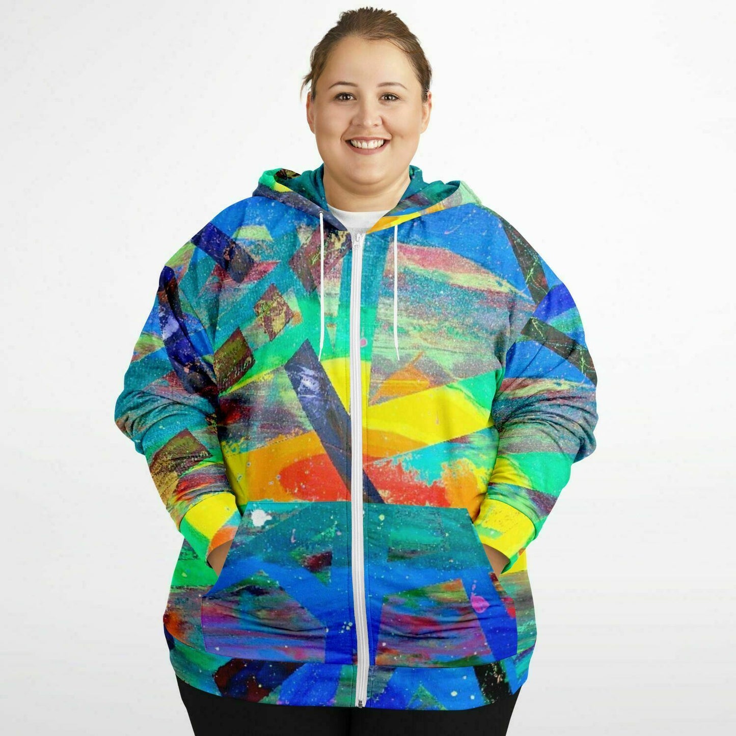 Stay cozy and stylish with the Gavin Scott Zipper Hoodie. Made with a soft, cotton-like fabric and a comfy brushed fleece lining, this genderless zip-up hoodie features a unique, eye-catching design. The visible nylon zipper front closure adds a touch of utility to this ultra-comfortable hoodie.