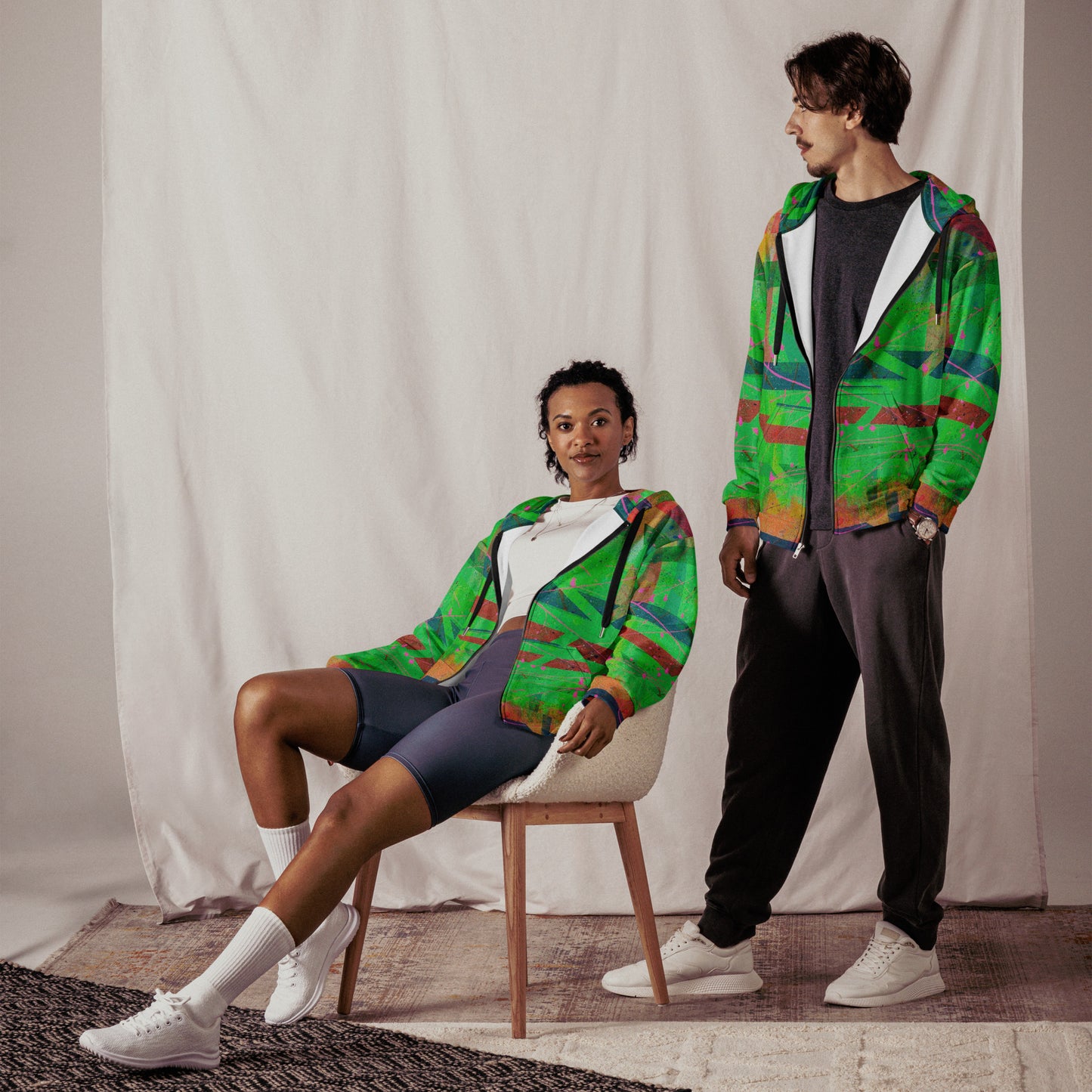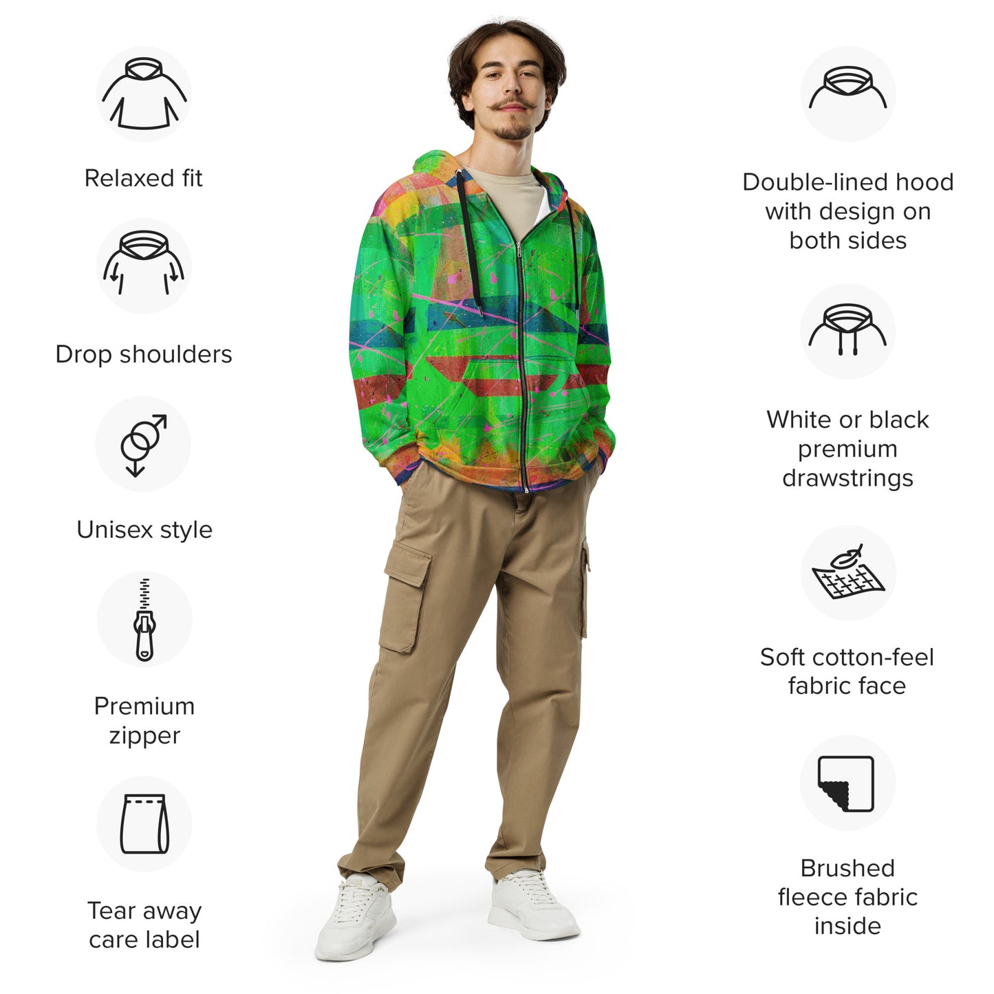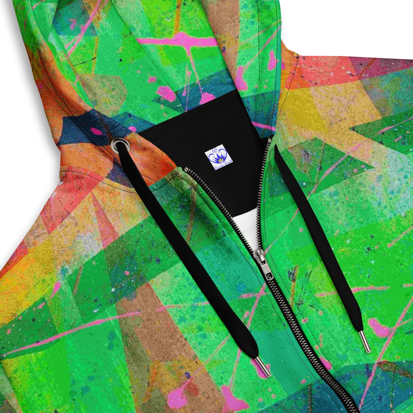 Unleash your unique style with the Gavin Scott Zipper Hoodie. Crafted from 95% recycled polyester and 5% spandex, this genderless hoodie boasts a soft brushed fleece for ultimate comfort. With a bold print, relaxed fit, and double-lined hood, you'll rock this sustainable fashion piece for years to come.