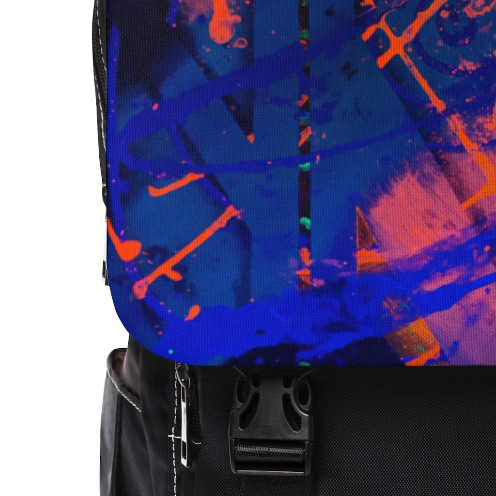 A casual backpack in a classic shape with a flap front design. It is made of a durable oxford fabric. It has two slip interior pockets and one laptop sleeve in the main compartment, a front zipper pocket, two side pockets.