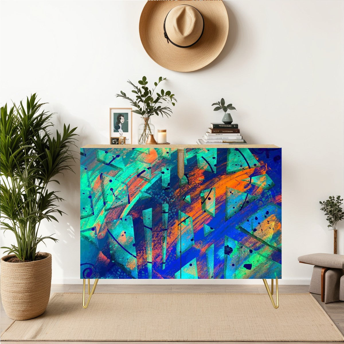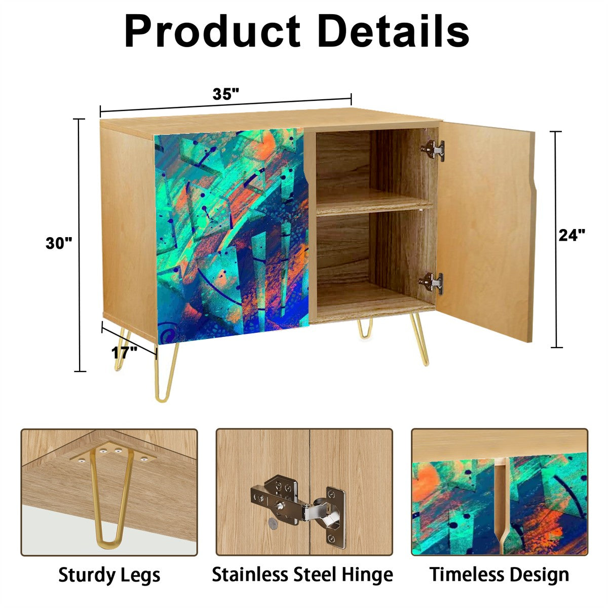 Elevate your storage game with the Gavin Scott Wooden Sideboard Cabinet. The exclusive design, featuring a layer of leather and UV printing, adds a touch of elegance to any room. With its high-quality wood construction and waterproof coating, it's not only durable but also easy to clean. Perfect for storing dishes, records, and more in any room of the house.